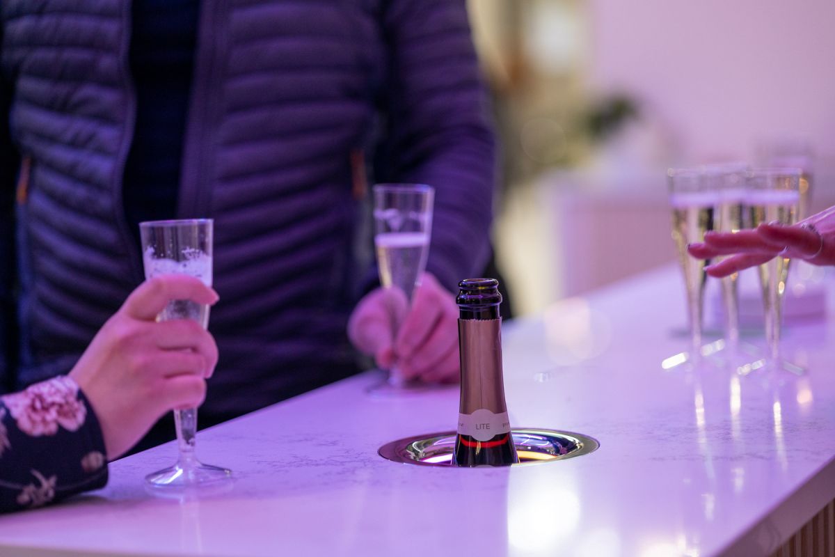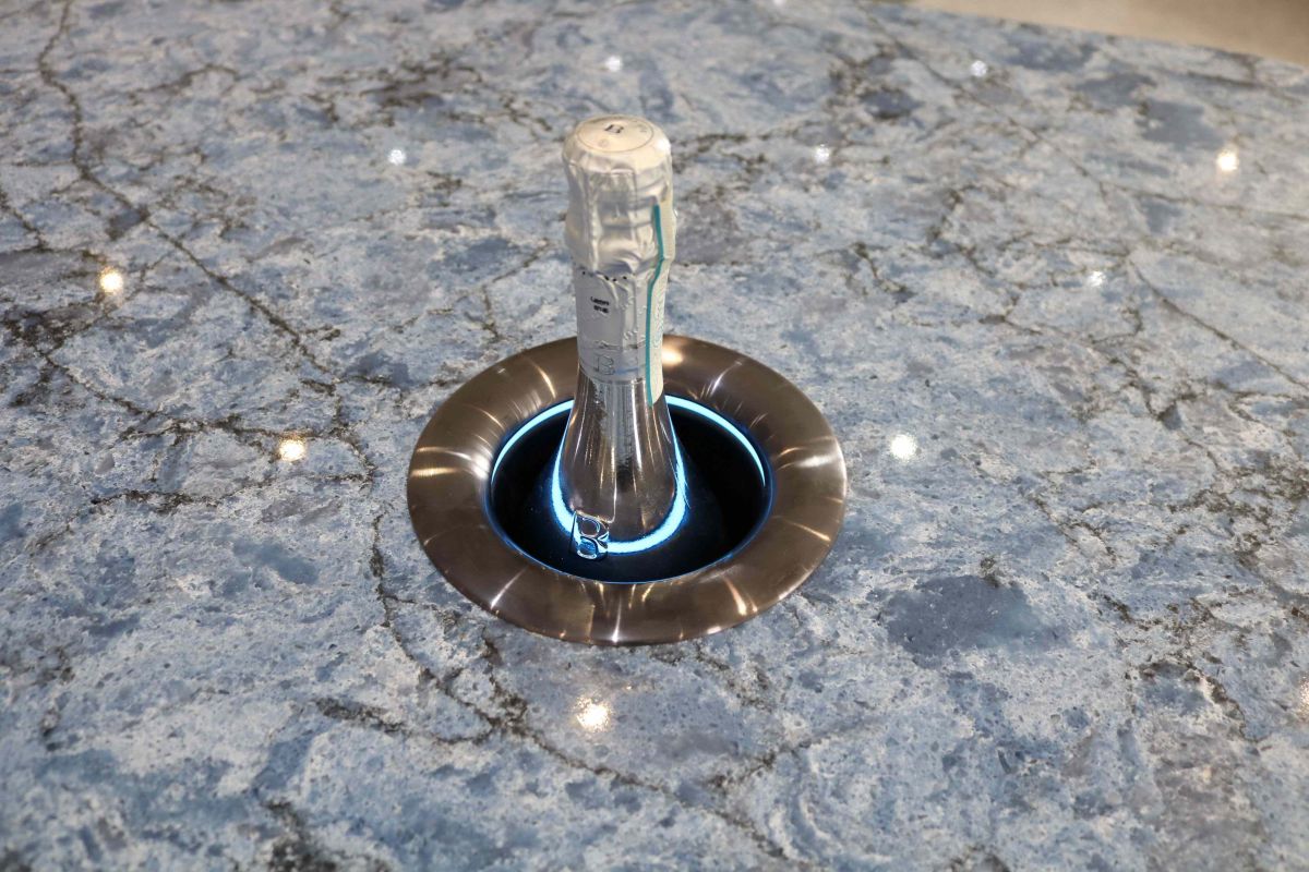 It all made sense once we had fitted the stone at the NEC; each hole housed a 'Kaelo' - An open bottle host, Kaelo keeps drinks chilled and every sip at the perfect temperature: