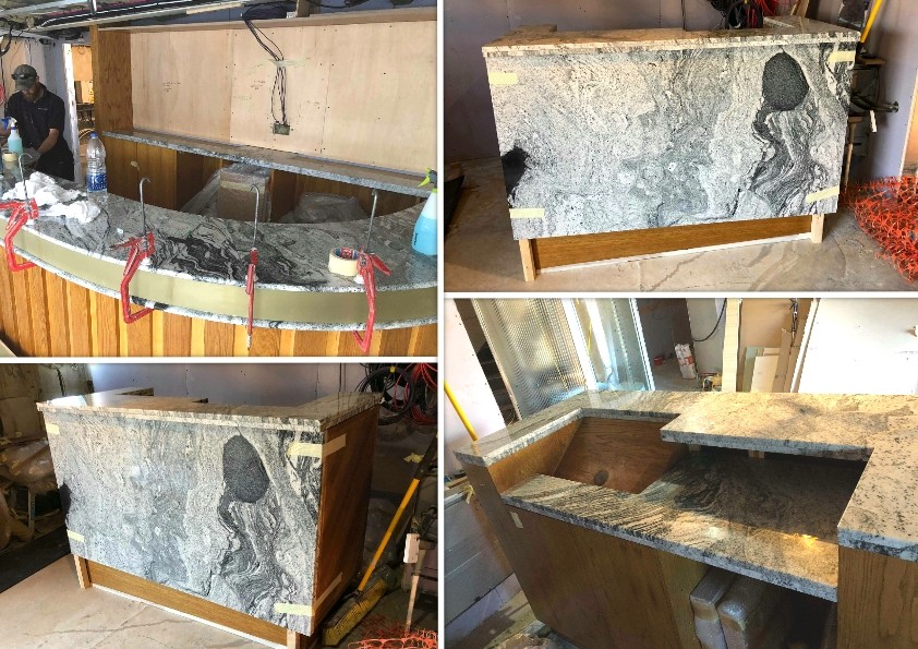 This weekend, the World of Marble team had a road trip up north to install the stone for a Yacht replica hotel. The two materials were Fusion Quartzite from Brazil, and Viscount White granite from India: