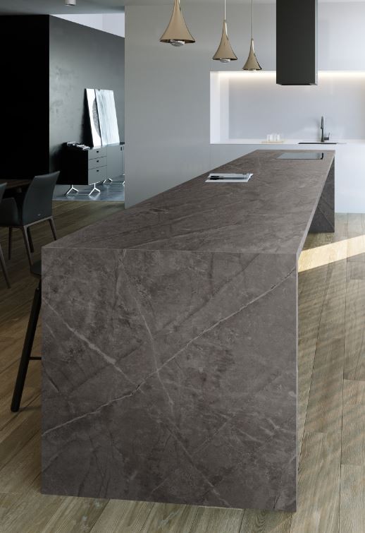 Inspired by natural stone, it resembles Gris Pulpis thanks to its elegance and versatility. Kira is a colour based on earthy tonesand has contrasting light grey veining. Fine veining – naturally arranged throughout the slab – and the smooth matte texture endow it with a timeless colour.